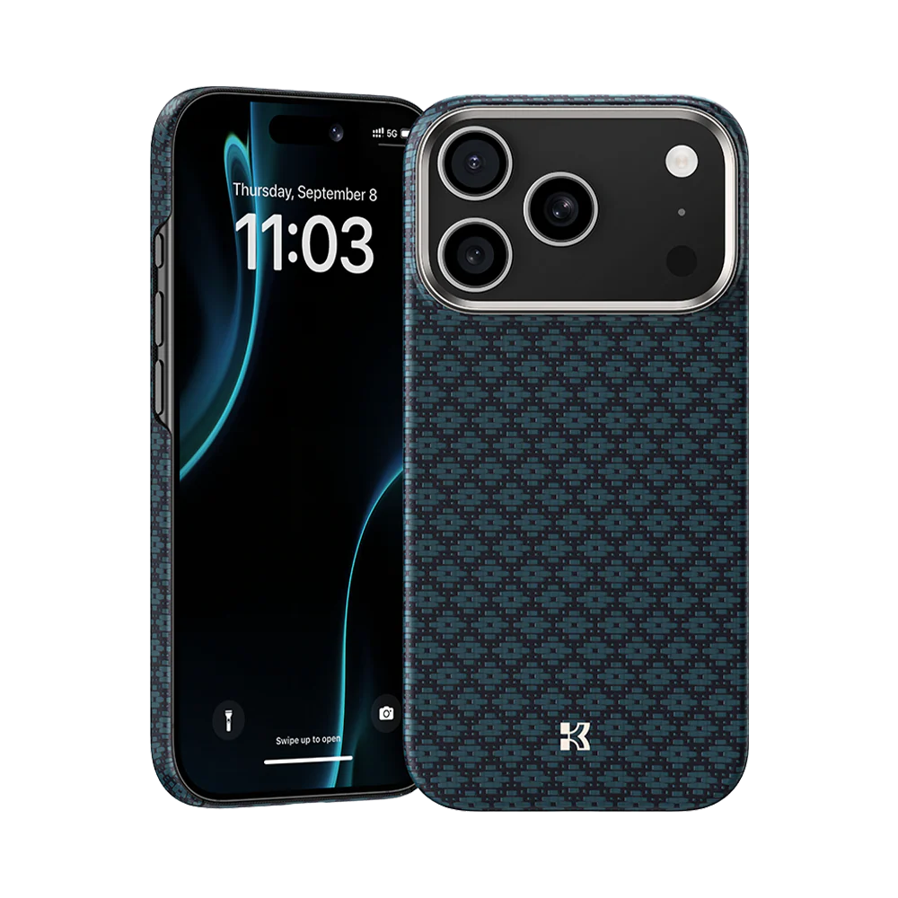 Guided by geometric form and inspired by nature’s essence, the ArmorGrid ArmorAir Case is woven from DuPont™ Kevlar® fiber with the refined Jiaoluo traditional weaving technique, creating a texture that balances resilience and artistry. Obsidian Black conveys timeless elegance, Azure Blue captures serene clarity, and Terra Orange reflects earthy warmth—a harmony of geometric precision and nature, woven into the lightest form.