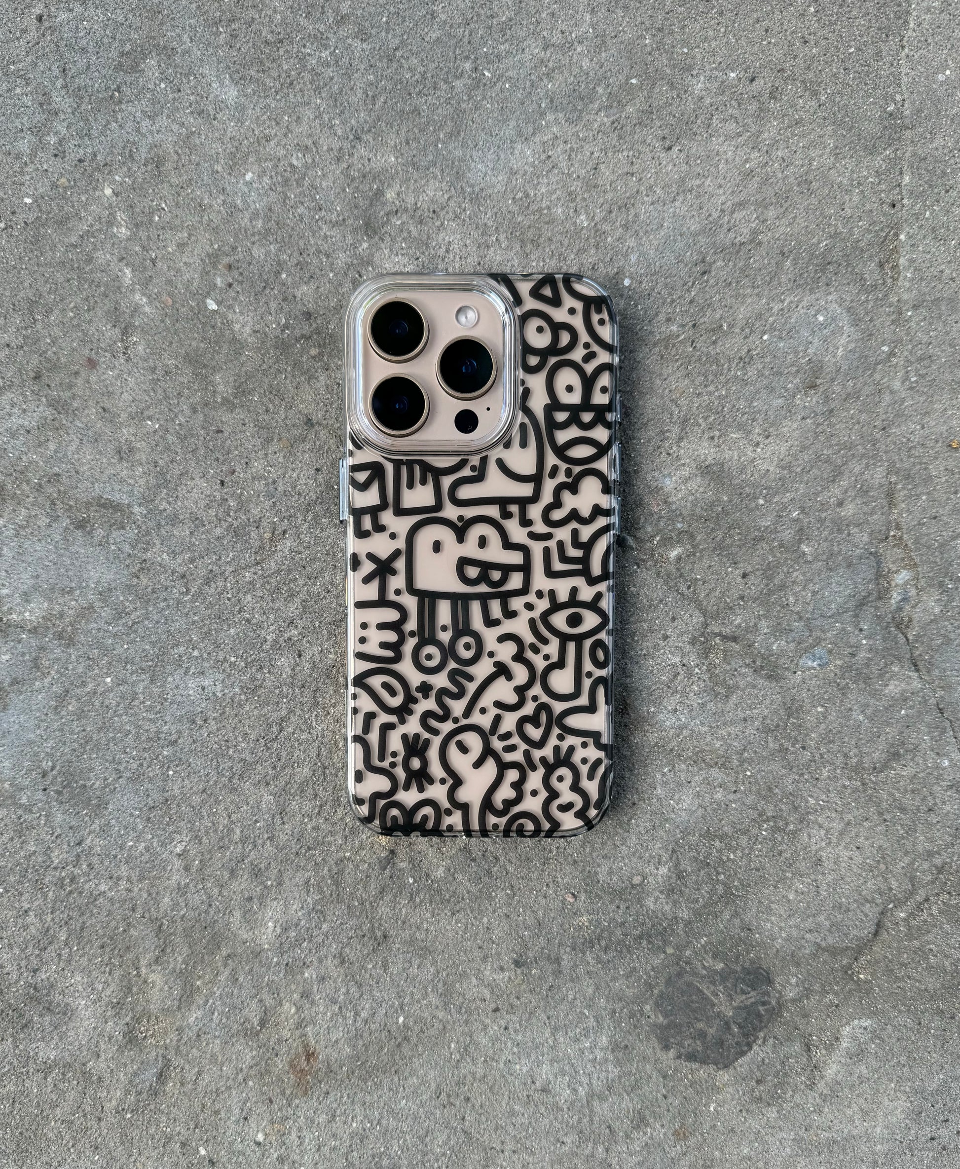 Doodles Design Transparent Designer Hard PC Anti Yellow Case for iPhone 15